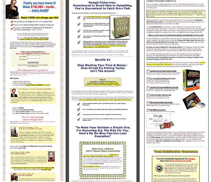 Look at the three web pages below. What you see at first glance are three classical money-making-scheme sites. Anybody who has been on the web for a while will be familiar with these. They basically promise you that you can earn a fortune doing close to nothing. They all promise you that they have absolutely nothing to do with Multi Level Marketing (MLM) and they all make money for their owners and not for those poor people who sign up.