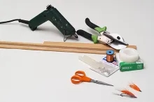 For the wood you will need a small, fine-toothed hacksaw or a real miter saw. A convenient alternative is a miter cutting hand shear, which allows you to easily cut wood pieces at the necessary 45 degrees angle. For the Coreboard you use a sharp knife and a metal ruler.