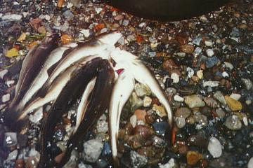 Cod (Latin: Gadus morhua, Danish: Torsk) is generally looked upon as second to trout. It is true that a trout will give much more fishing pleasure per pound, but if you don't catch any, it's not really so big an advantage. The cod are almost always around and generally very easy to catch.