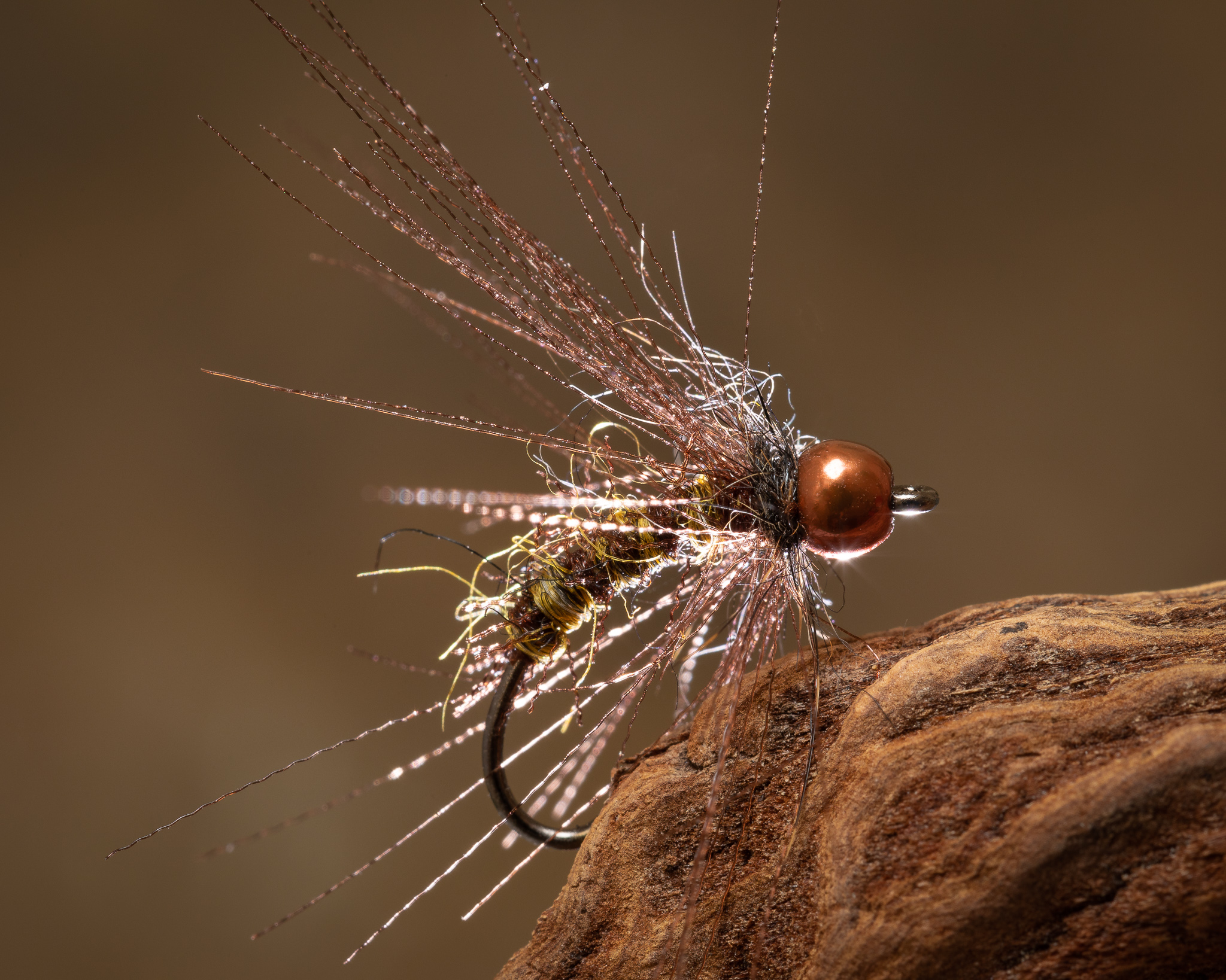 A nymph featuring two different hackles made from organza