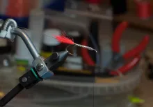 This fly is a bright and tasty looking bite of feathers and fur that can sometimes be the key to luring a big trout. It's a variation of a variation of the Bloody Butcher.