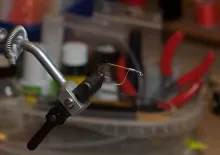 It would be nicer to follow if some sort of light background was behind the fly tying rather than a clutter of gear, find it difficult to follow, sorrry.