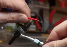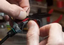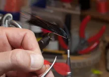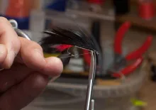 When you tie down the zonker strip on the front of the fly, you often get a fairly large bump under the thread - and under the head or the front hackle. You can avoid this by leaving a little space in front of the wing, and finishing it with a small bunch of hair similar to that on the strip.
