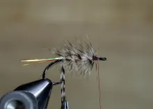 was to tie a fly in not too bright colors, and the dull gray body covered by the golden pheasant hackle does give the fly the perfect dull hues that a lot of sea trout anglers prefer over shiny and colorful flies.