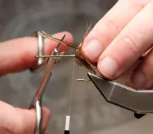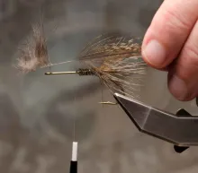 The finely speckled Gallo de Leon feathers give this fly a look not far from the classic Tippet Grub, but with the traits of a modern coastal fly. The large hackle makes the fly unwilling to break the surface and makes it sink very slowly, so adding some weight in the form of tungsten foil under the body or eyes in the front is an idea if you want it to penetrate the water column better.