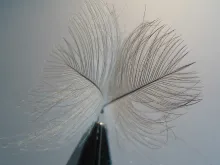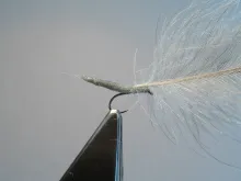 4. Tie in the two cdc-feathers. Secure them and tie them in up-right position.