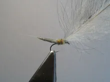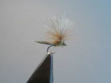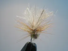 A small mayfly, which may be (mis)taken for a dun during the sometimes the concentreted hatches on late August and Septemper evenings. It uses a hollow extended body, parachute hackle and wings of cdc stems to float high.