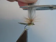 9. Secure the hackle making the thread follow the hackle 4-5 times.