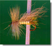This process requires the repeating of good stories and experiences with which we fortify one another's egos and build expectations for the coming fishing. Some of these stories have to be repeated because we all will have arrived separately and at slightly different times depending on how quickly we could get away from home and how far any one of us has driven. A few of our regulars come as far as 80 miles for the evening. Silly as it might seem, each of us has to walk around, sipping on our favorite beverage, and inspect the other's equipment and flies even though we know after all the years what flies and rods the others will be using. Bob Herubin will be using his three-piece 8-1/2 ft. Winston five weight "honey" and a bushy, parachute type hex pattern. John will almost certainly have a 6-1/2 ft. Nova cane rod and a Flex Hex pattern. This year, however, I startled everyone by revealing that I was using a "new" pattern called the Picket Pin! This revelation was very controversial. My abrupt departure from the conventional and expected sparked lengthy discussions by some of the other members.