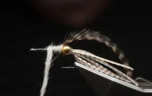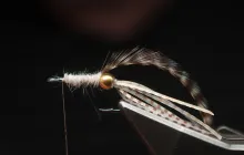 Rubber legs are easy to find in many colors and patterns, and a little tan dubbing and a grizzly hackle finishes the materials list. All are cheap and easy to find materials.