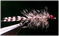 | Tail | Two tips of grizzly hackle feathers |