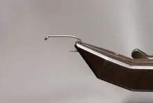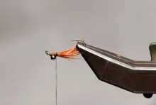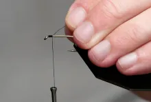 • Align the tips and tie in just behind the eyes so that the tipe just reach into the hook bend