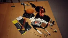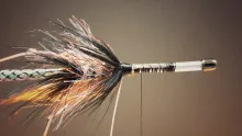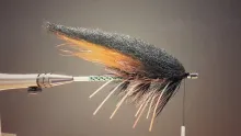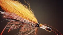 Danish Allan Nørskov Johansen ties a large, gaudy and semi-crazy fly with lots of hair, flash and rubber legs for stream fishing at night for sea run brown trout.