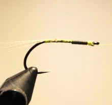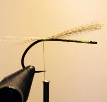 Rüdiger ties the fly in two versions: an olive green one and a brown one. The difference lies in the color of the dubbing. You can of course experiment with more colors.