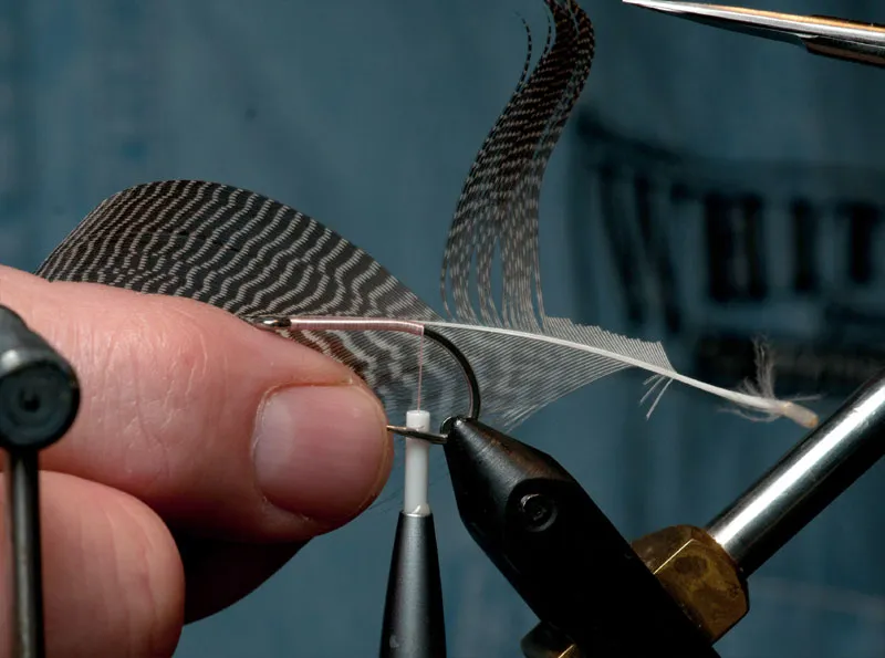Select a mallard feather and pull out a suitable number of barbs and cut the free at the base