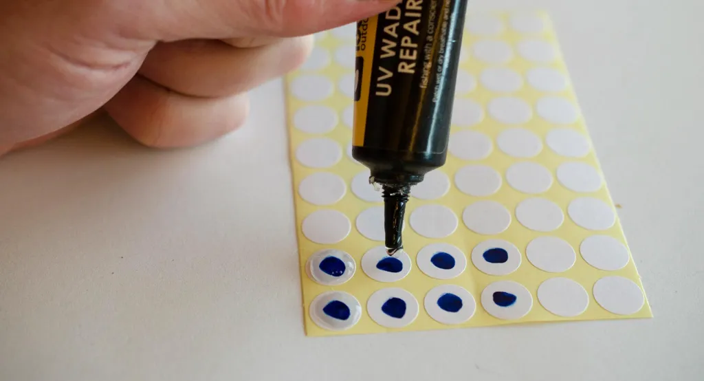 If you want a 3D-effect, you can add UV-resin before sticking the eyes on the fly