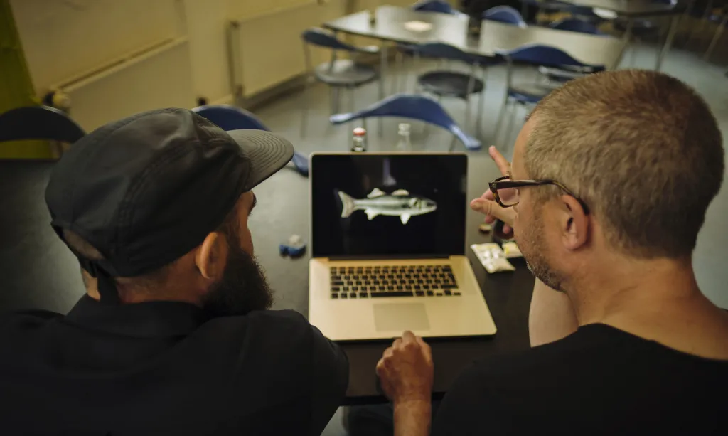 When the image comes out of the camera, the background is partly black thanks to the use of polarized light and a filter on the camera.