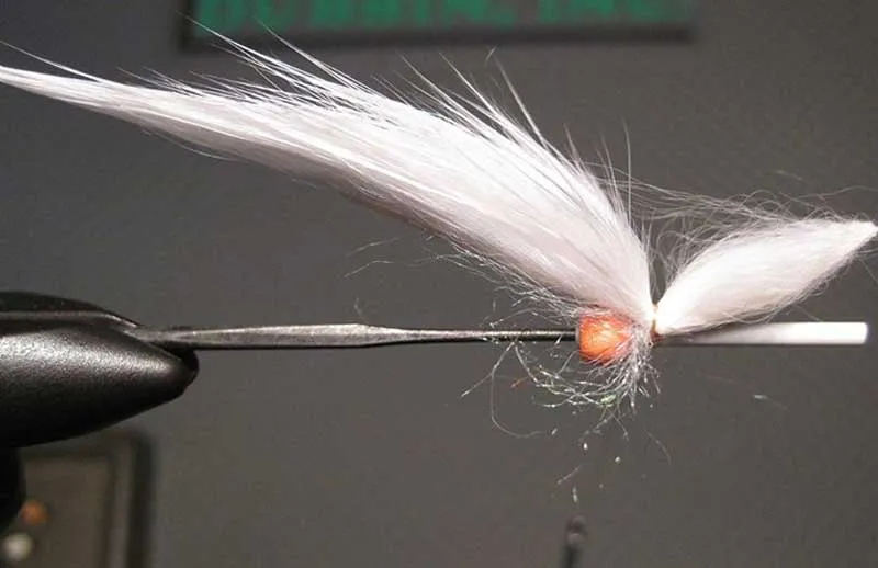 Melt a collar on the rear of the tube, pass a bead down to it and glue in place. Tie in the wing right in front of the bead to lift it a bit.