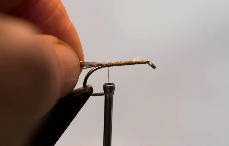 Tie in the tail in front and cover it and the hook shank with an even layer of tying thread