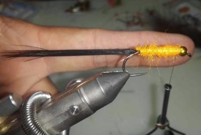 Once you have tied a bunch of marabou onto the hook shank, apply a bit of saliva between your thumb and index finger and stroke over the marabou. The fluffy marabou will be out of the way, making it much easier to tie the rest of the fly. Once the feathers dry - or get into water - the marabou will spread out again.