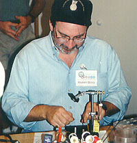 Tying flies at the 1999 Southern Rodmakers Gathering. I organize this gathering each year. In 1999, we had 74 rodmakers from all over the world in attendance.